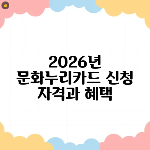 2026년 문화누리카드를 신청할 수 있는 조건은 다소 간단합니다. 아직 정확한 신청 방법과 혜택이 궁금하세요? 여러분이 꼭 알아야 할 정보를 하나씩 살펴보도록 하겠습니다. 문화누리카드는 문화체육관광부가 지원하는 카드로, 문화와 관련된 활동에 이용할 수 있는 소중한 기회를 제공합니다. 여러분의 문화 생활을 한층 풍요롭게 만들어 줄 이 카드에 대해 자세히 알아보겠습니다.